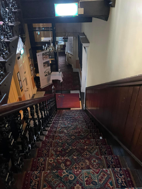 under the stairs this is where the stables once was and still got the horse old food stalls in there, we had some activity in this area equipment going off and sounds.