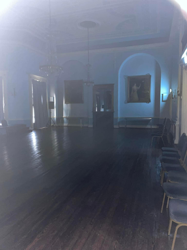 We went down to the old jail where some equipment went off in the two small cells. It felt a bit uneasy down there, went upstairs into the big ballroom hall and flasher the dog going off under one of the fireplaces and a few cat balls.